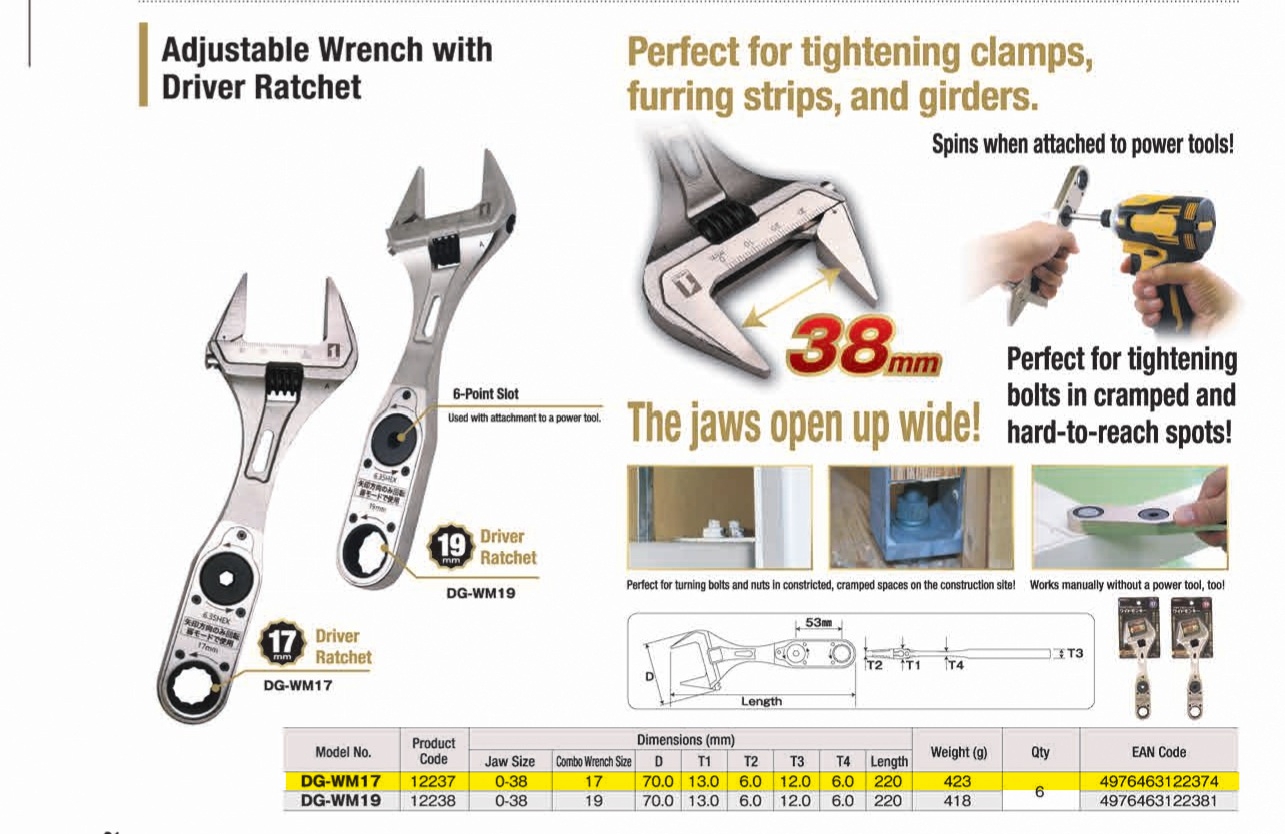 - Sản phẩm mỏ lết điều chỉnh MUSTTOOL DG-WM17 thích hợp để vặn bu lông, đai ốc trong không gian chật hẹp, chật chội trên công trường. Hoạt động thủ công mà không cần dùng điện.